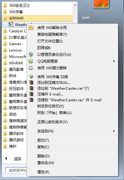 2、右鍵點(diǎn)擊WeatherCaster.exe