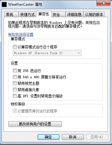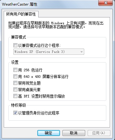 WeatherCaster軟件如果要在Windows Vista或者Windows 7操作系統(tǒng)下運(yùn)行,需要進(jìn)行如下設(shè)置才可以。