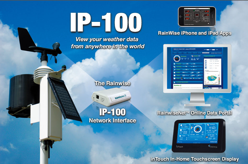 IP-100可以實現(xiàn)前所未有的多種格式傳輸和輸入??梢酝ㄟ^我們高技術(shù)、免費永久觸摸屏顯示器、或者通過Rainwise iPhone 程序來實現(xiàn)是否在線連接,這樣你就可以隨時隨地?fù)碛锌捎脷庀髷?shù)據(jù)。