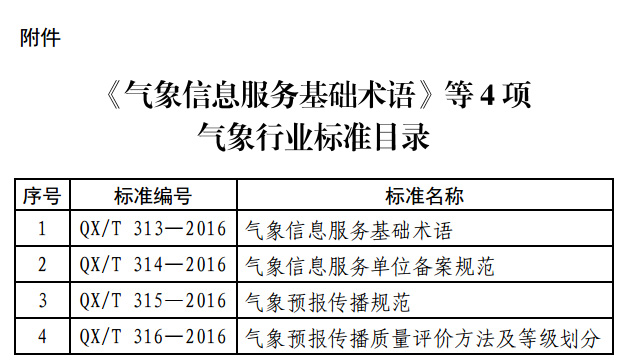 中國氣象局發(fā)布《氣象信息服務(wù)基礎(chǔ)術(shù)語》等4項氣象行業(yè)標(biāo)準(zhǔn)